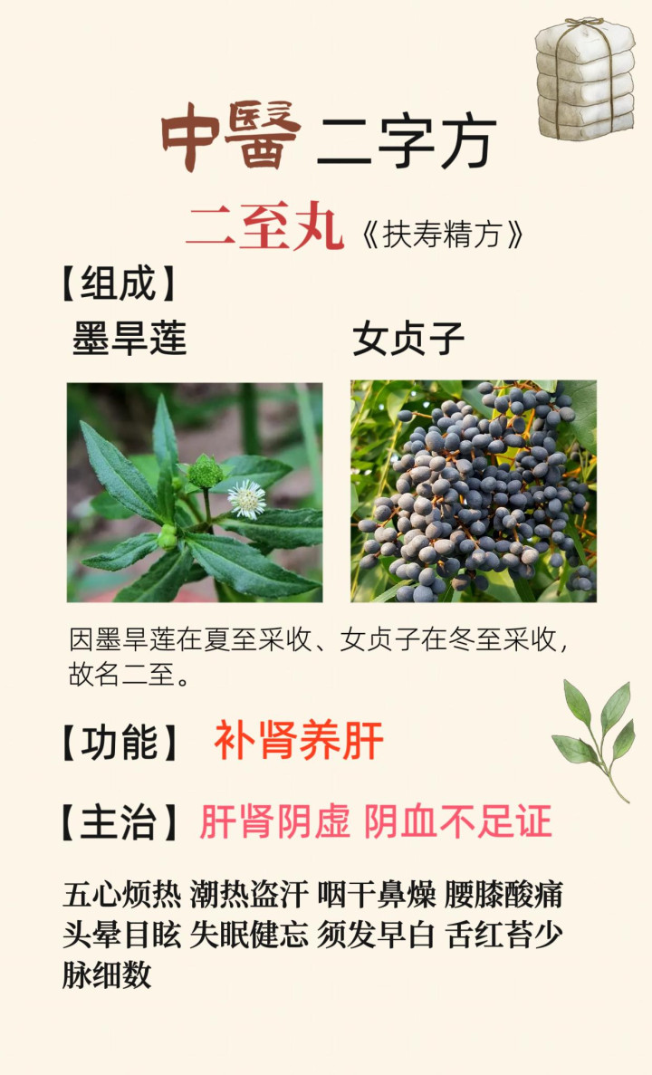 中医二字方。两味药构成的方剂:二神丸 二至丸 二妙散 水陆二妙药